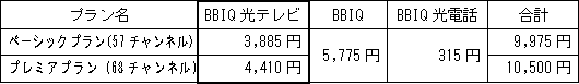 「BBIQ光テレビ」を「BBIQ」とセットでの利用の場合